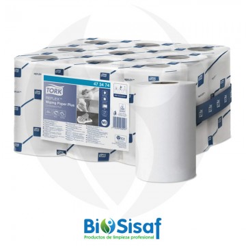 Toalla en rollo TORK Reflex Wiping M3 (Mini), caja con 12 Pz de 343 hjs c/u. De 1 hoja es ideal para tareas de limpieza debido a su resistencia y alta absorción. Color Blanco.