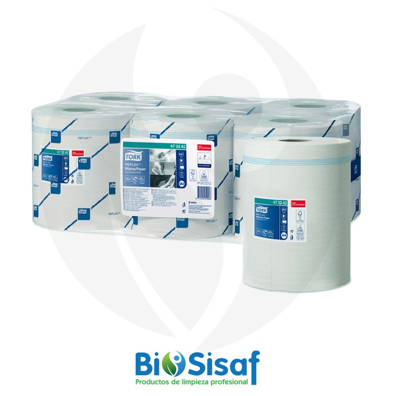Toalla en rollo Tork Reflex Waping M4 (Maxi). Caja con 6 pz de 857 hjs. De 1 hoja es ideal para tareas de limpieza debido a su resistencia y alta absorción. COMPATIBLE 473190