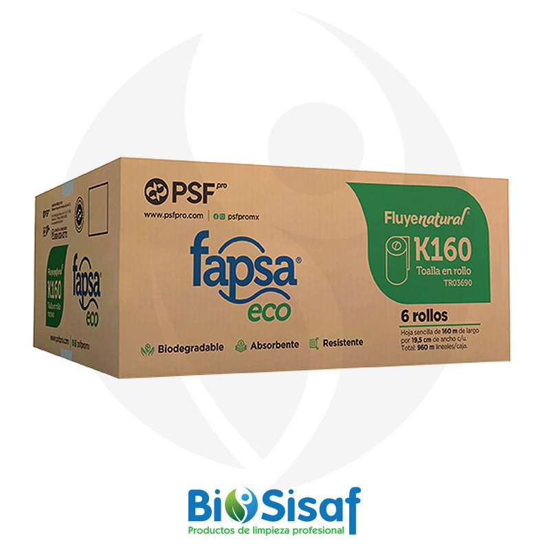 La toalla en rollo marca Fapsa® eco 160 metros es un producto ecoeficiente que que brinda al usuario un excelente rendimiento y suavidad en cada hoja, papel hecho con fibras 100% recicladas.